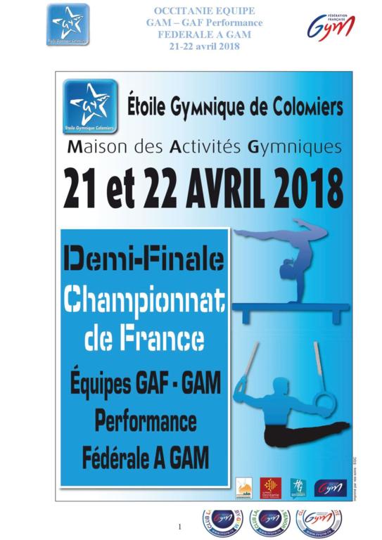 GAM : Championnat régional Equipe Perf - Colomiers- 21 et 22 avril 2018